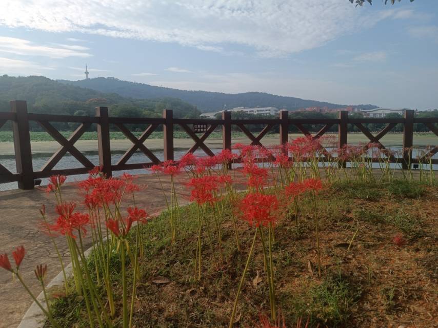 月破松梢晓,诗吟马上秋。凉风侵帽角。曙色淡鞭头。 树影连村合,泉声咽石流。山花红夹道,揽辔任勾留
